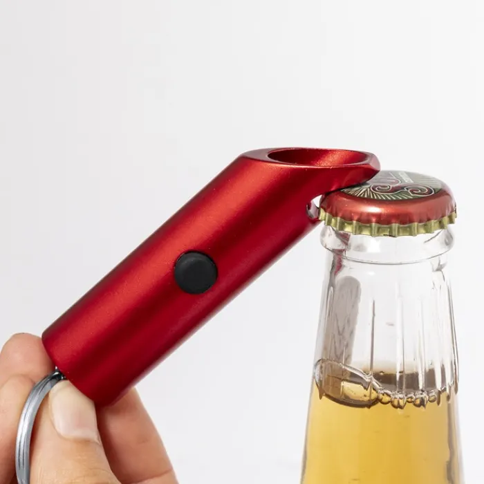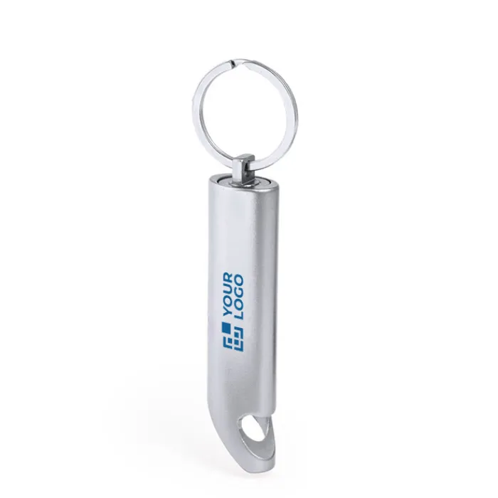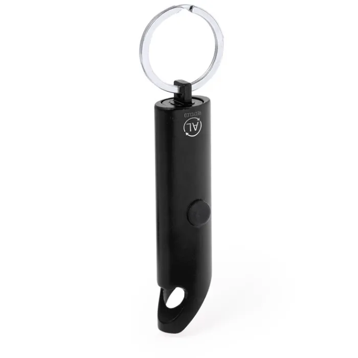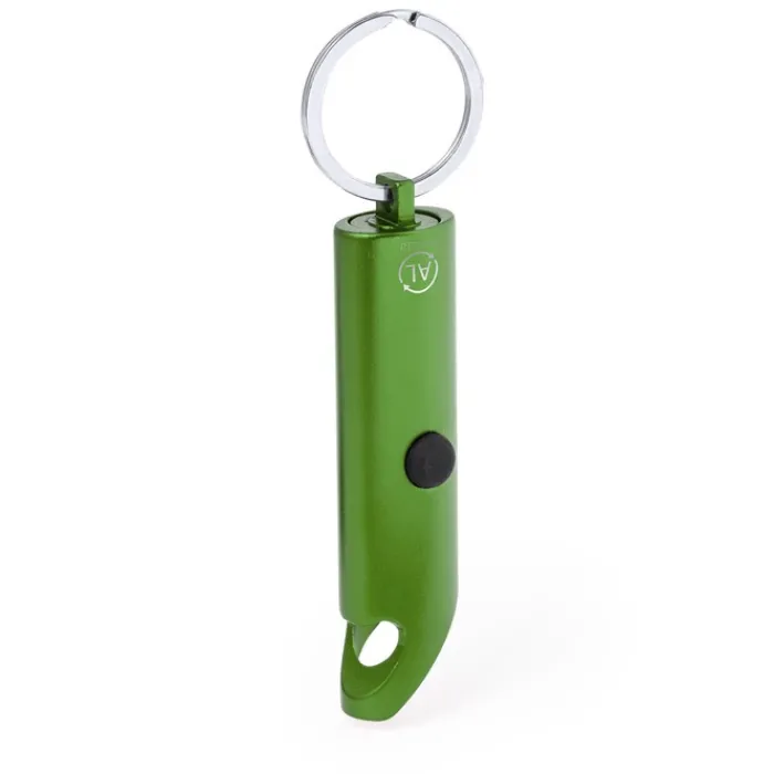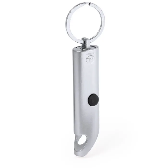 Robusta torcia realizzata in alluminio riciclato. Questo pratico accessorio è dotato di 3 luci LED alimentate dalle batterie a bottone incluse. Il suo design include un apribottiglie, e un anello portachiavi, offrendo versatilità in un unico dispositivo. Disponibile in una ampia gamma di colori. Presenta sul corpo il logo dell’alluminio riciclato. Presentato in una scatola di design kraft. L’alluminio riciclato è un materiale con possibilità di riciclaggio quasi infinite, senza che si perdano le sue proprietà originali e consumando meno energia nel processo. La certificazione GRS (Global Recycled Standard) garantisce l’origine riciclata del materiale utilizzato per la fabbricazione del prodotto.