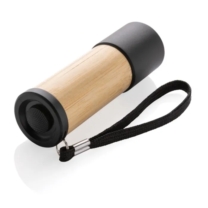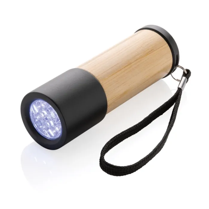 Torcia tascabile realizzata al 100% in bambù certificato FSC® e in plastica riciclata certificata RCS (Recycled Claim Standard). Ha una potenza di 30 lumen e genera un fascio di luce fino a 20 metri. Consegnata in scatola kraft mista FSC®. Articolo e accessori al 100% senza PVC. Batterie incluse. Contenuto totale di materiale riciclato: 36% basato sul peso totale dell’oggetto. La certificazione RCS garantisce una catena di approvvigionamento completamente certificata di materiali riciclati.