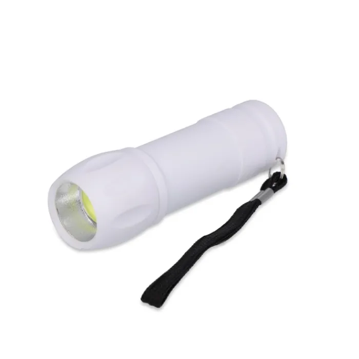 Torcia compatta realizzata in ABS riciclato con una luce COB da 80 lm. Include un laccetto per la mano per facilitarne il trasporto e 3 batterie AAA per un uso immediato. Ideale per le attività quotidiane e per le attività all’aperto.
