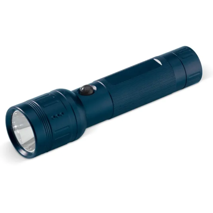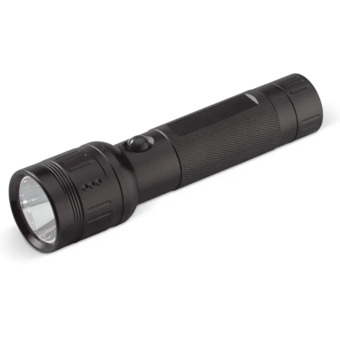 Torcia a LED da 3W in alluminio, perfetta per un viaggio avventuroso o in campeggio. Consegnata in una confezione regalo che include 3 batterie alcaline AAA ad alta durata.