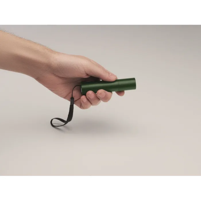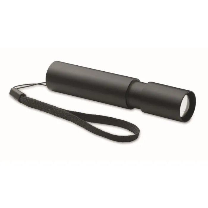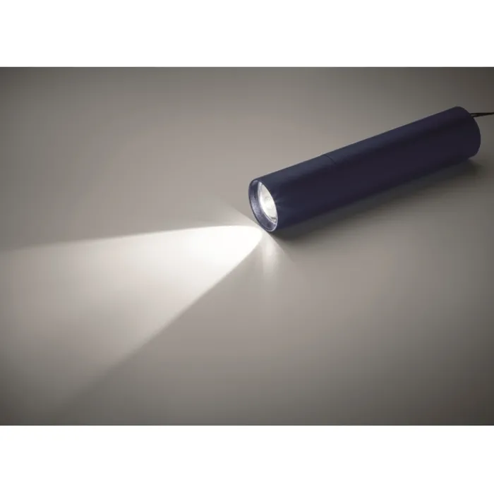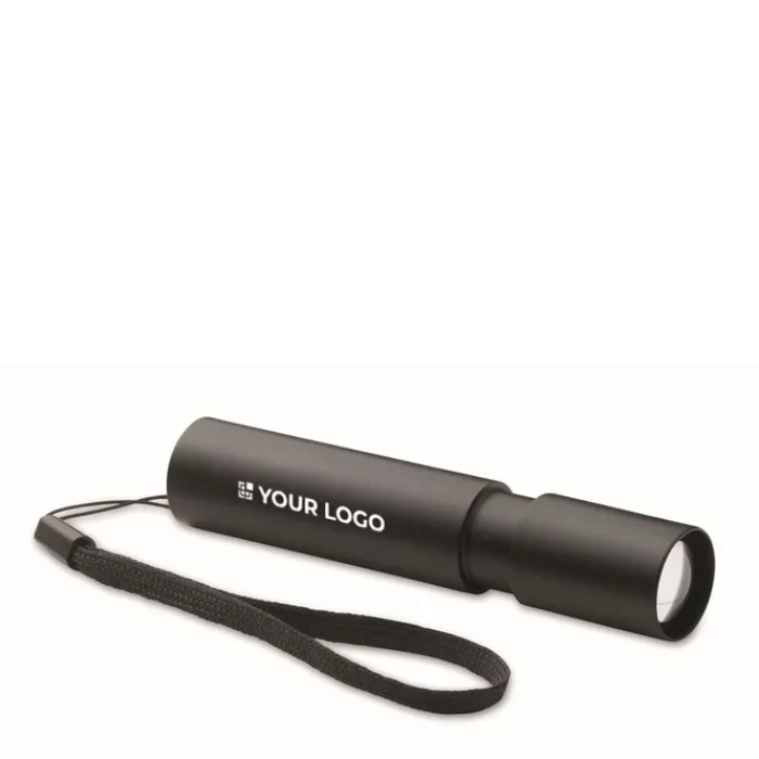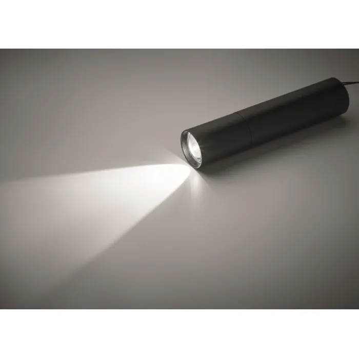 Torcia ricaricabile in alluminio da 110 lumen con 3 impostazioni di luce e funzionalità di zoom in/out. Batteria ricaricabile integrata da 400 mAh e cavetto di ricarica in dotazione. Dispone di un laccetto da polso.