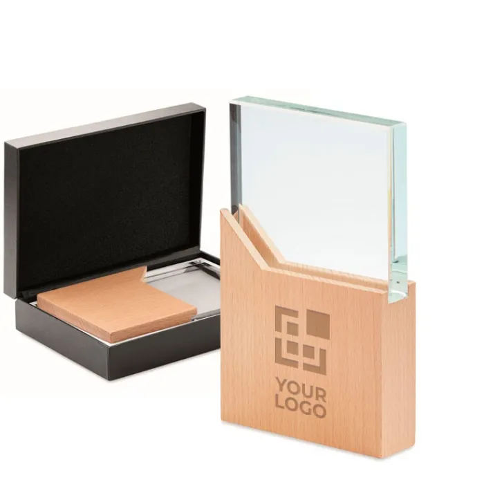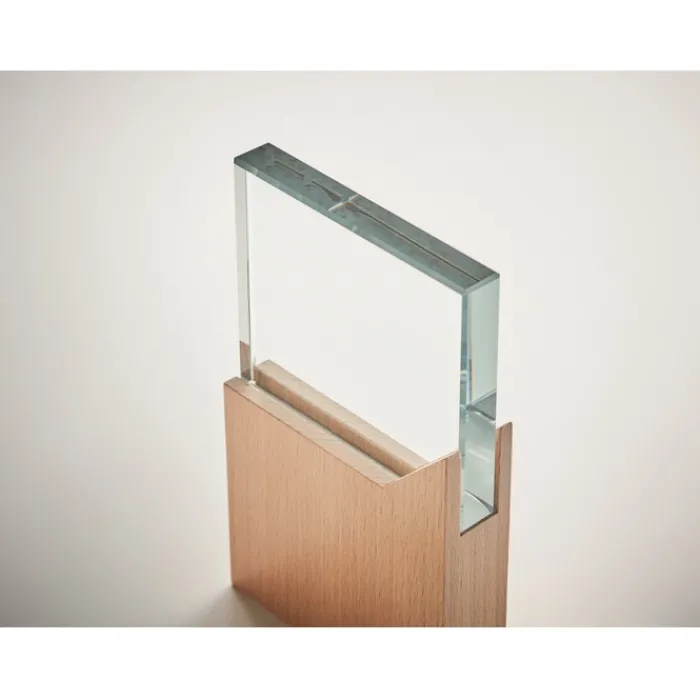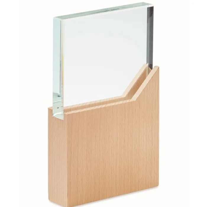 Trofeo o targa commemorativa in cristallo con base in legno di faggio presentato in una confezione regalo. Il legno di faggio conferisce al premio un aspetto naturale che conquisterà. Il legno è un materiale naturale, per cui possono verificarsi leggere variazioni di colore tra un articolo e l’altro.