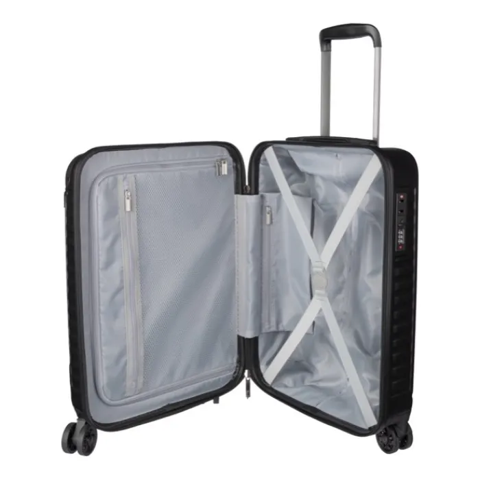 Trolley in ABS da 20 pollici, 8 ruote, manico estensibile su tre livelli, include chiusura con tre lucchetti a combinazione digitale, placca di metallo per la personalizzazione laser