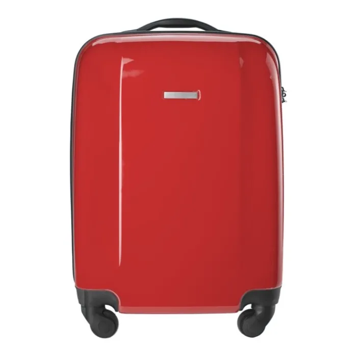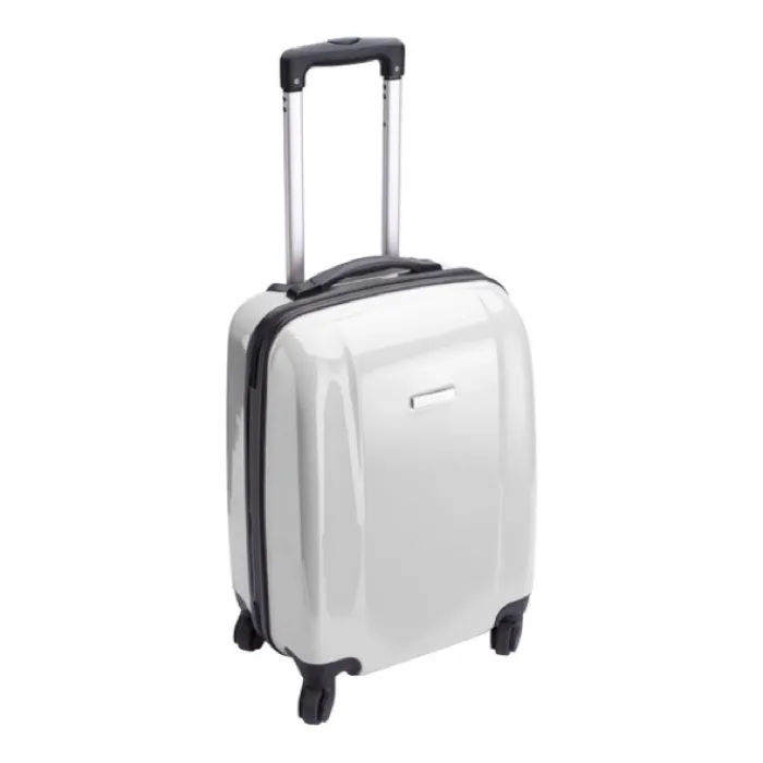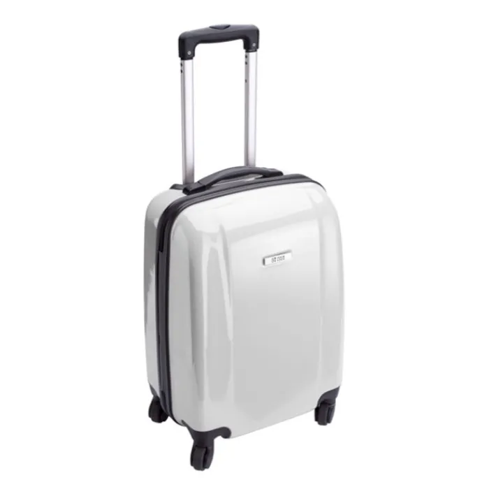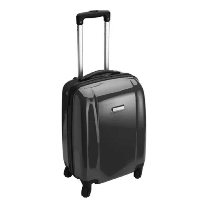 Trolley rigido in ABS e PC ricoperto da pellicola di protezione. Ha 4 ruote girevoli, un manico estensibile, lucchetto numerico ed una placca di metallo per la personalizzazione.