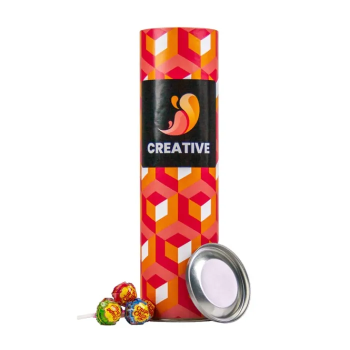 Il tubo Chupa Chups è un contenitore personalizzato, riempito con 700 g ℮ di lecca-lecca nei gusti più amati e popolari. Per un regalo originale, contiene circa 60 lecca-lecca.