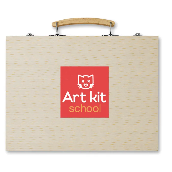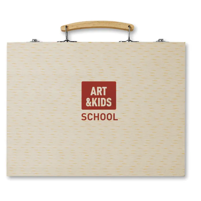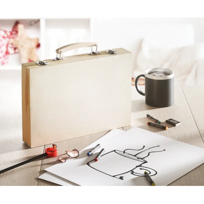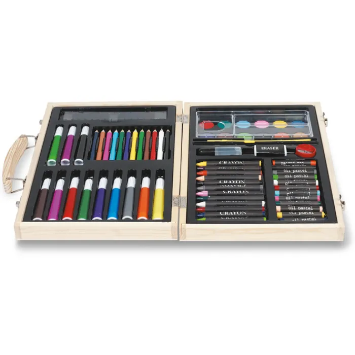 Set pittura 66 pezzi in valigia di legno. Pastelli a cera, matite colorate, pennarelli ,colori ad acqua