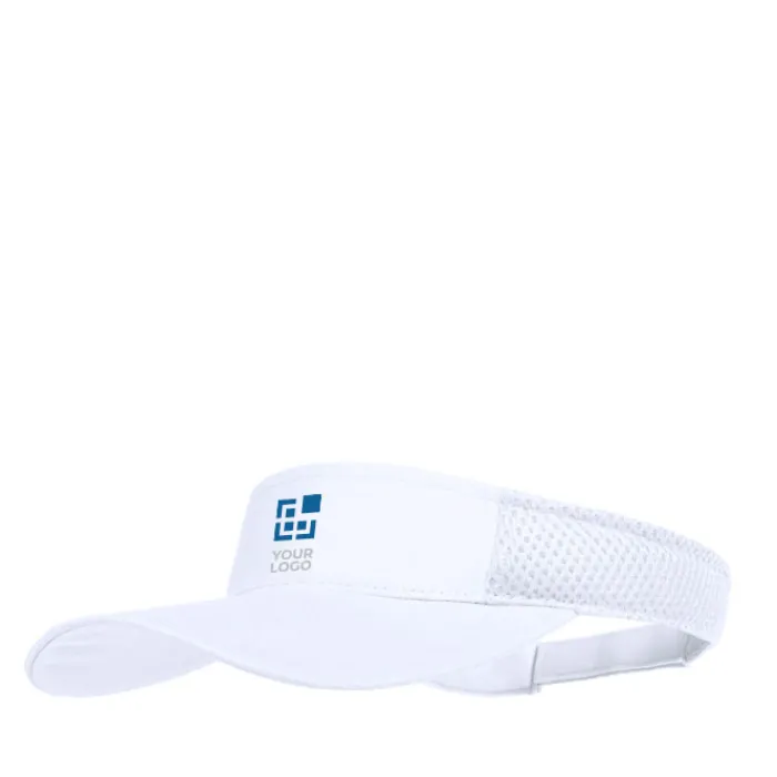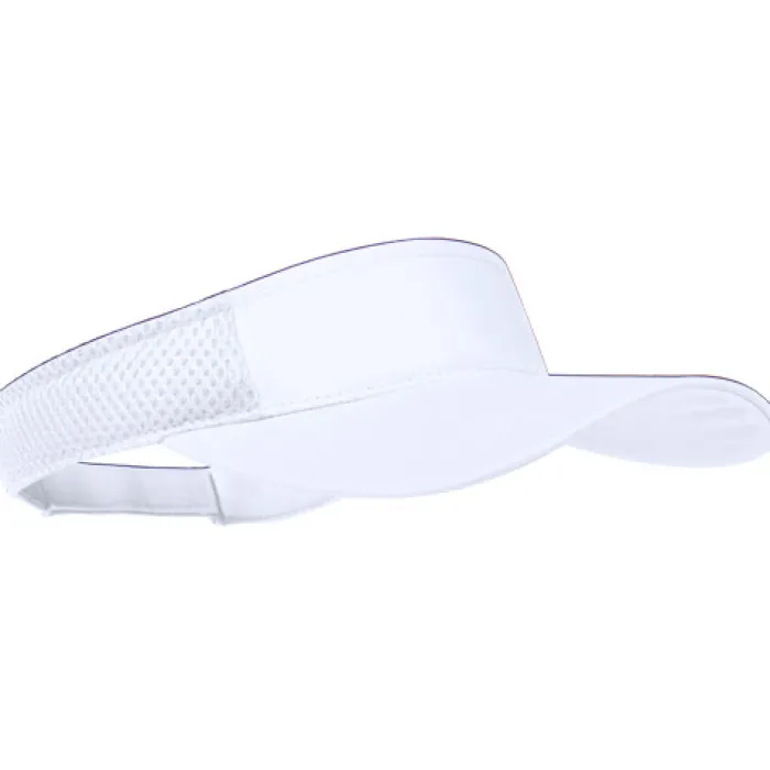 Visiera in poliestere dai colori vivaci. Chiusura regolabile in velcro e lati imbottiti con pannelli in rete antisudore.