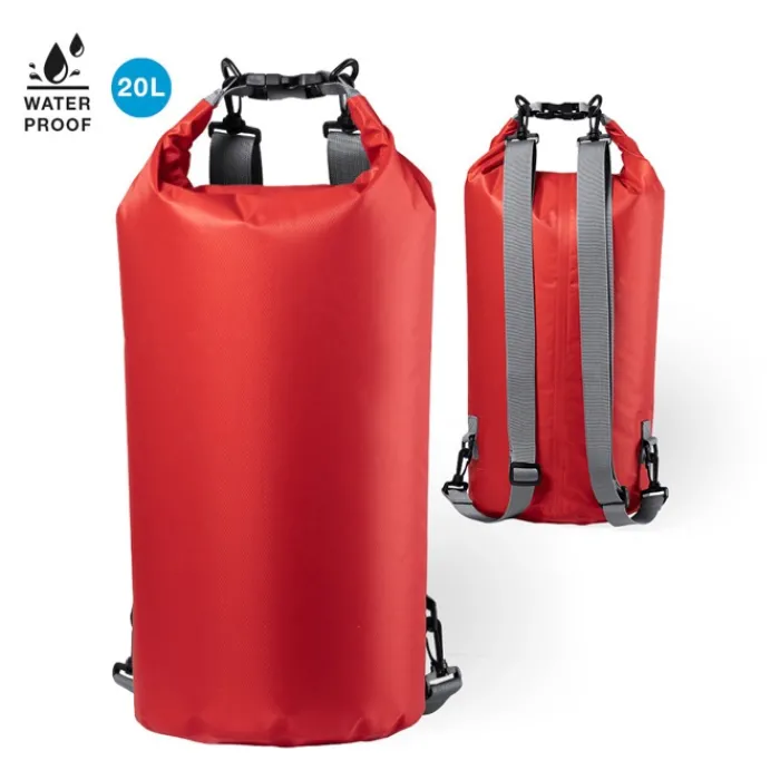 Zaino impermeabile di grande capacità (20l), realizzato in morbido e resistente ripstop, con chiusura di sicurezza a tenuta stagna. Manico con chiusura a fibbia e spallacci regolabili in colore grigio. Disponibile in un’ampia gamma di colori con finiture lucide.