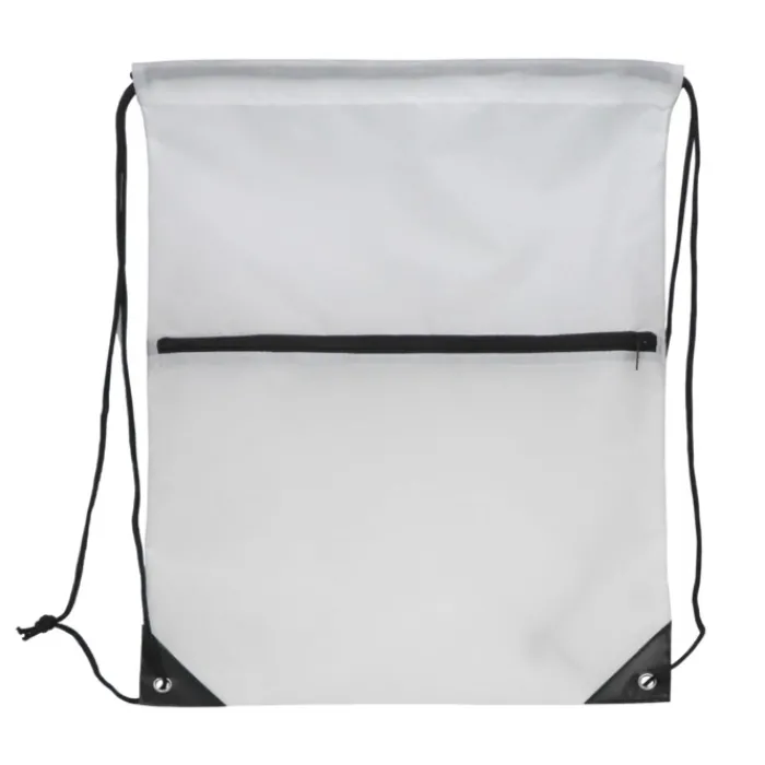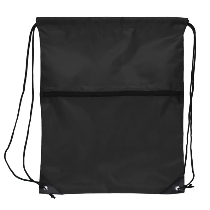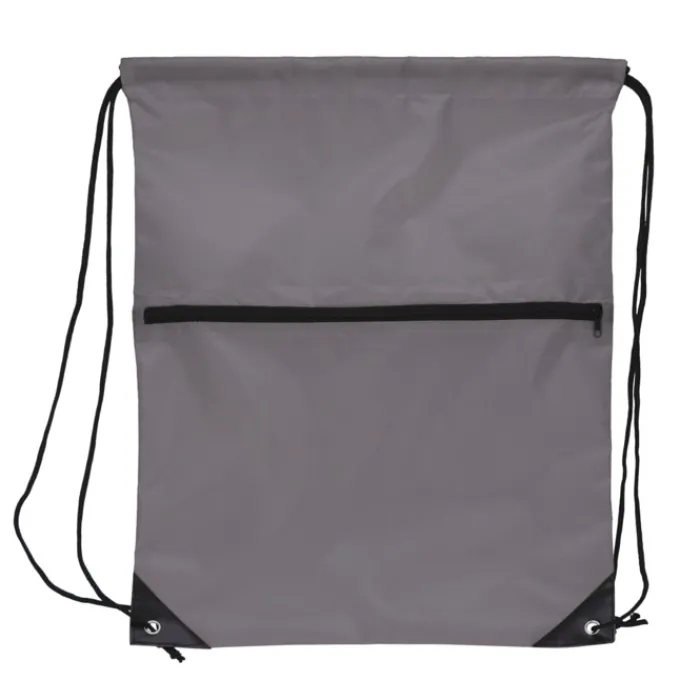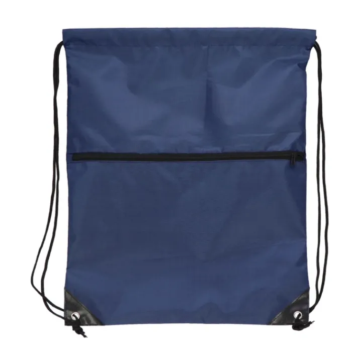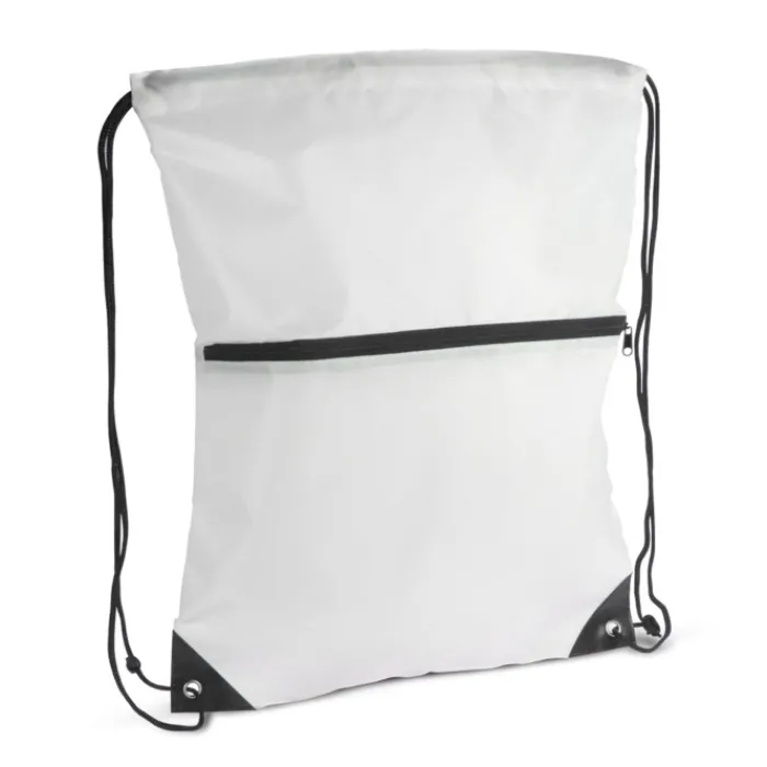 Zainetto con coulisse in r-PET 210T. Tasca piccola frontale con cerniera e tira zip in metallo.