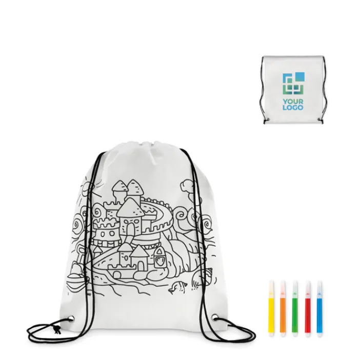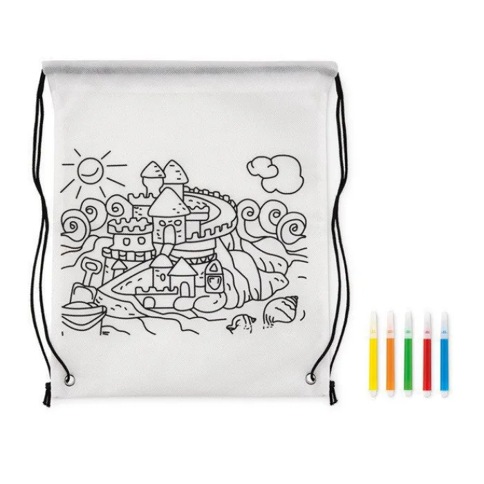 Sacca in non woven da colorare. 5 Pennarelli inclusi. 80gr.
