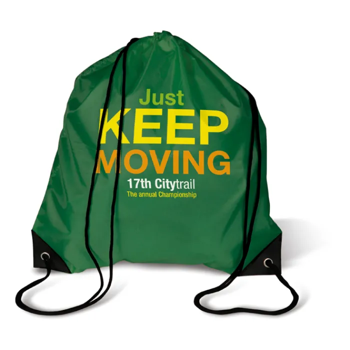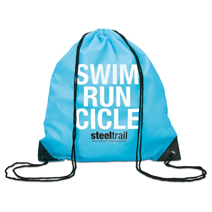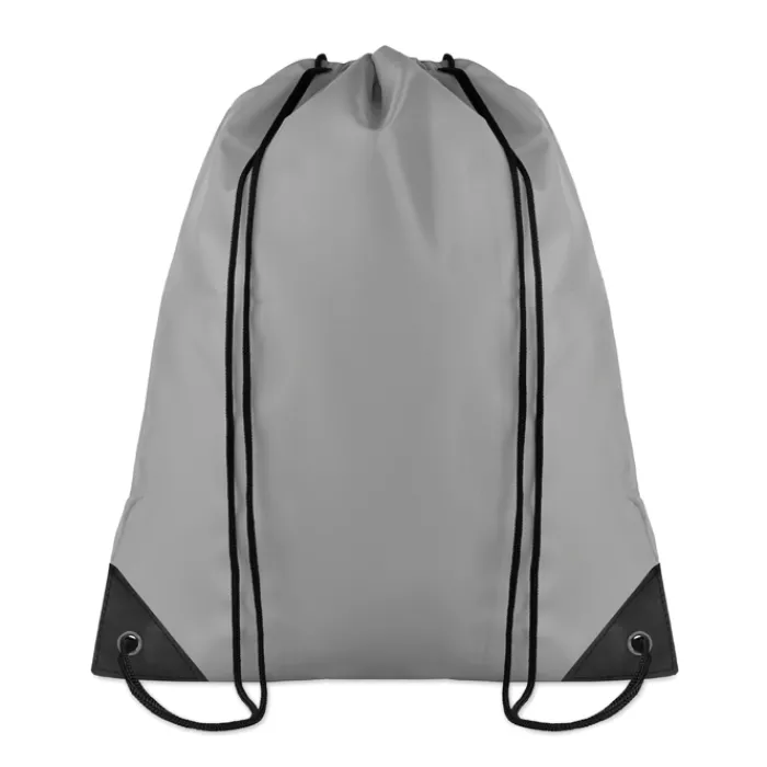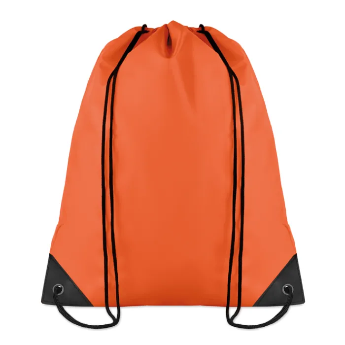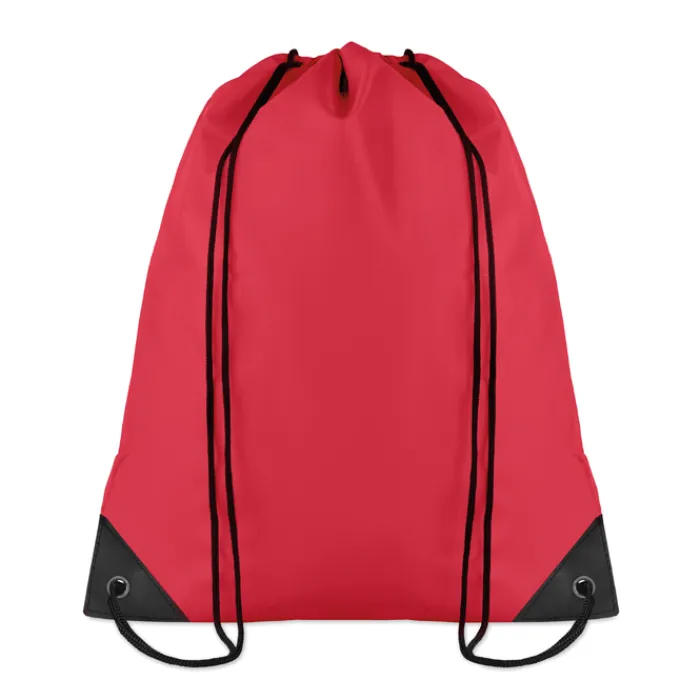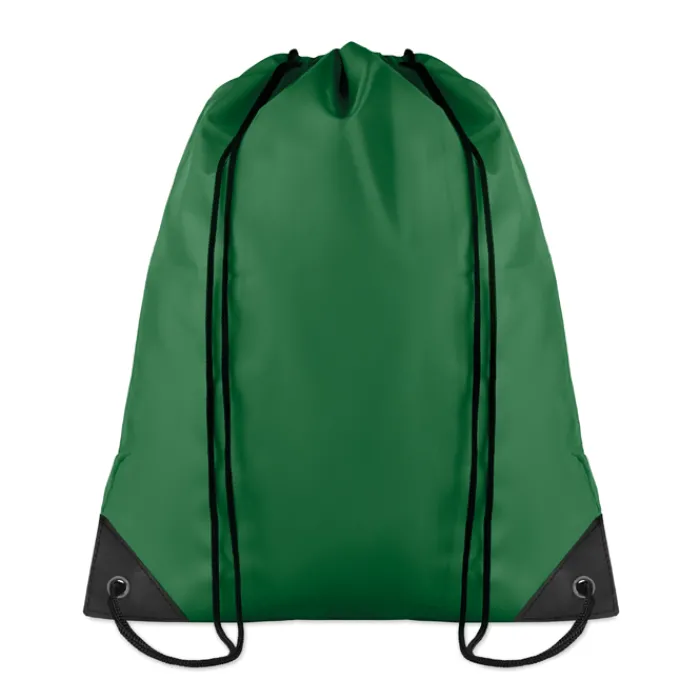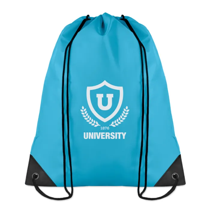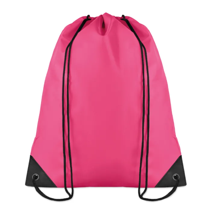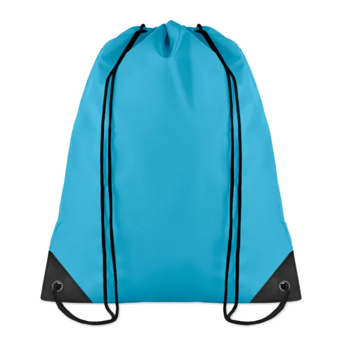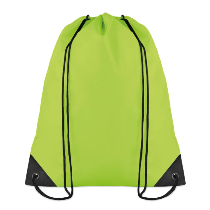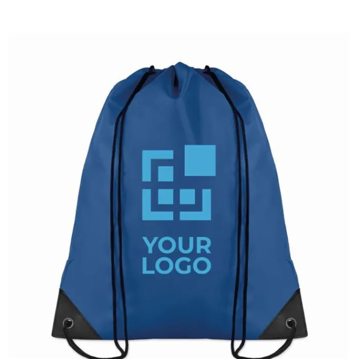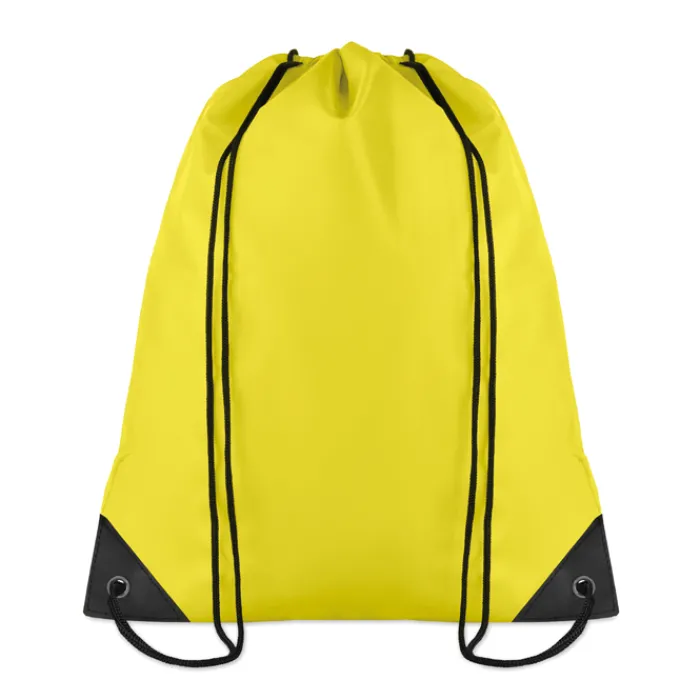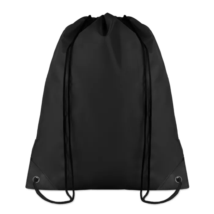 Gli zainetti a sacca sono molto popolari grazie alla loro comodità, praticità e leggerezza. Ideali per muoversi in città o durante i viaggi, questo modello economico è realizzato in poliestere 190T e può essere personalizzato con il logo della tua azienda al miglior prezzo. Gli angoli inferiori anteriori sono rinforzati con pelle sintetica nera, mentre il retro è in tessuto. Inoltre, un anello metallico attraverso cui passano le corde aiuta a prevenire deformazioni o strappi in questa zona, garantendo maggiore resistenza.