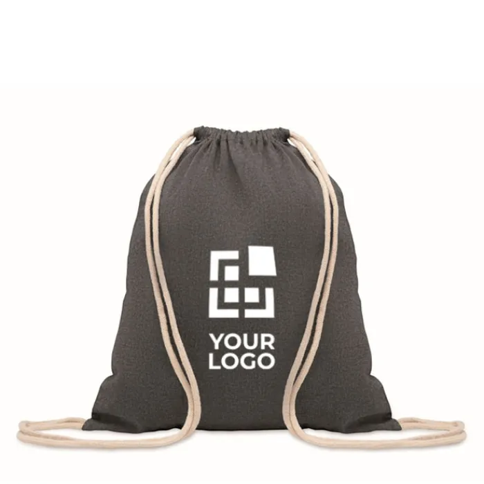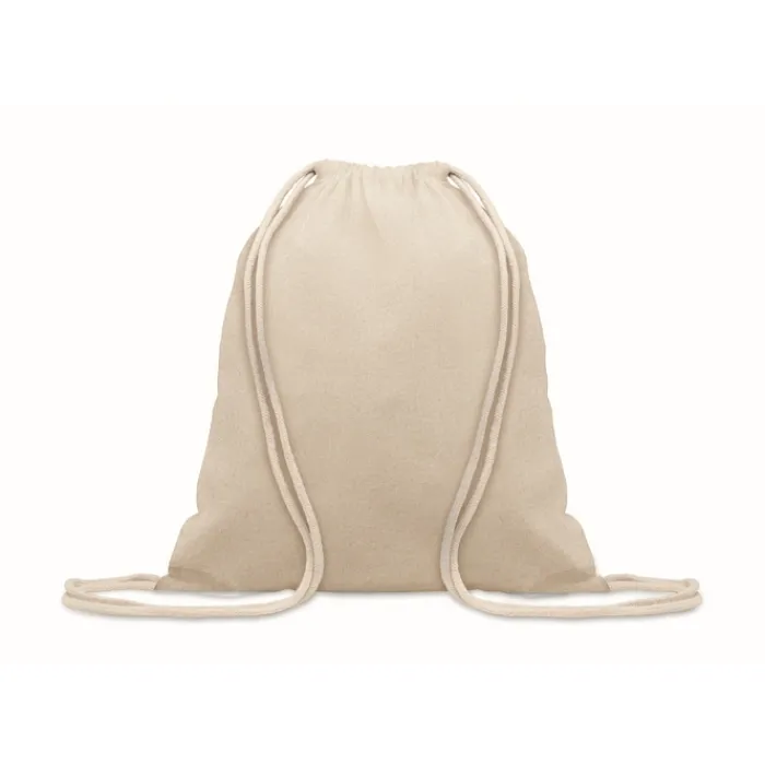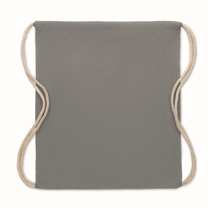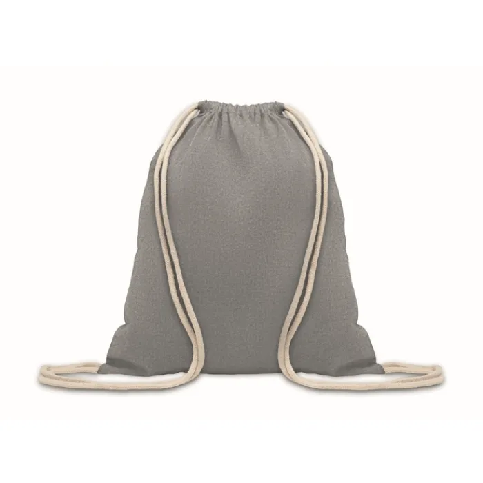 Zainetto con coulisse in cotone da 140 gr/m² con 80% di cotone riciclato e 20% di cotone normale.