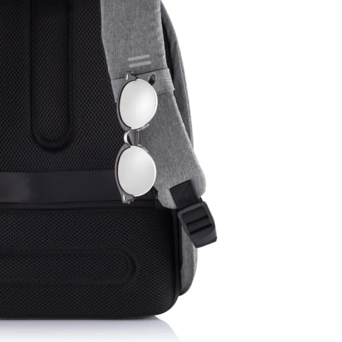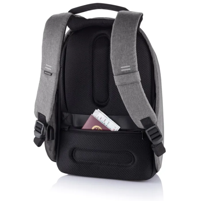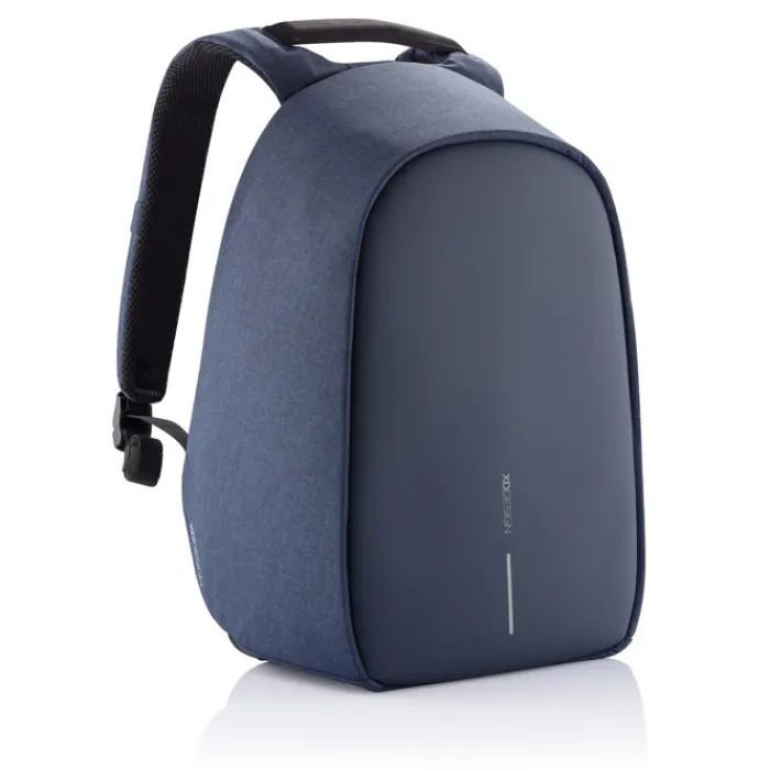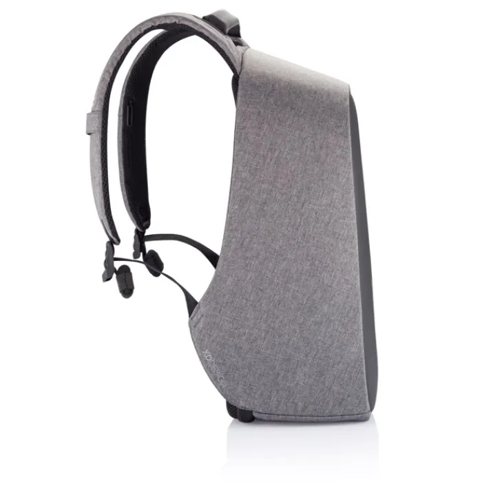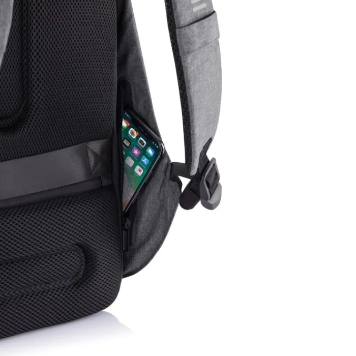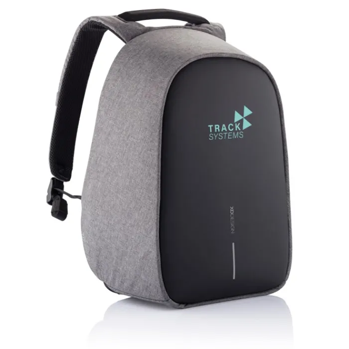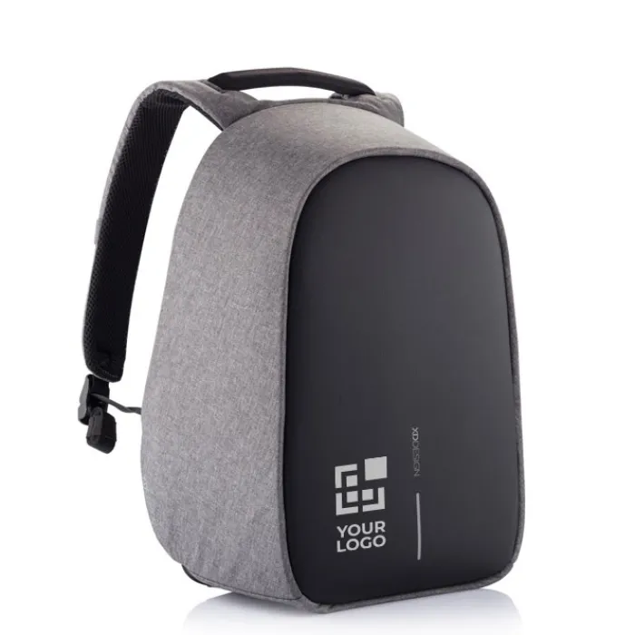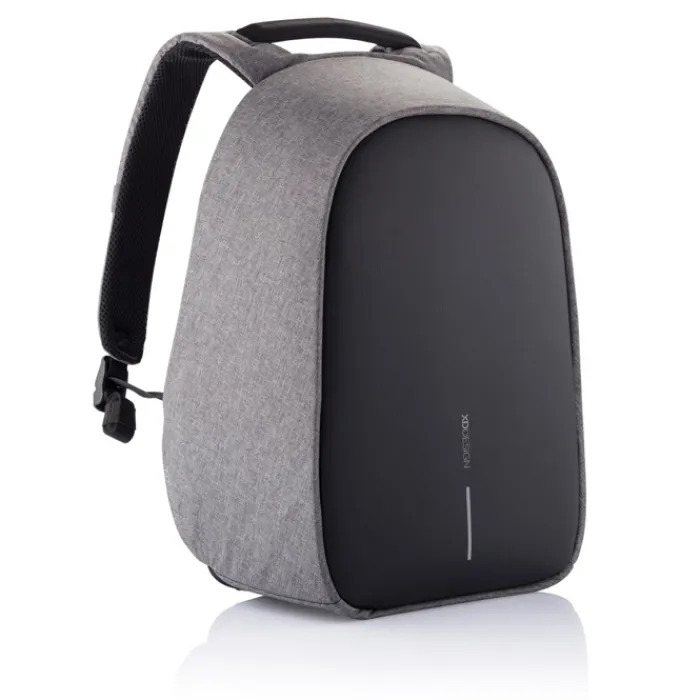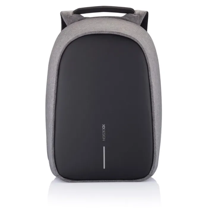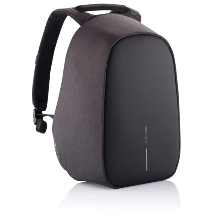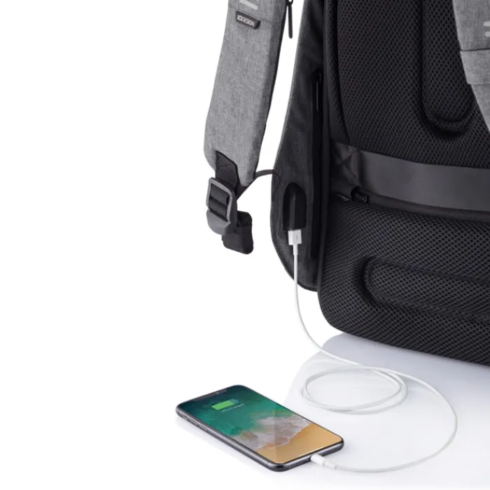 Zaino antitaccheggio con parte posteriore realizzata con materiale antitaglio, cerniere e tasche nascoste. Dotato di porta USB integrata. Tessuto idrorepellente ed inserti riflettenti. All’interno ha scomparti imbottiti porta pc da 15,6” e tablet da 12,9”. Realizzato in materiale R-pet e tracer AWARE™ che garantisce l’uso di materiali in puro tessuto riciclato e l’impatto sulla riduzione dell’acqua. Per realizzare uno solo di questo zaino si risparmiano 16 litri di acqua e si riutilizzano 28 bottiglie di plastica. Design registrato®