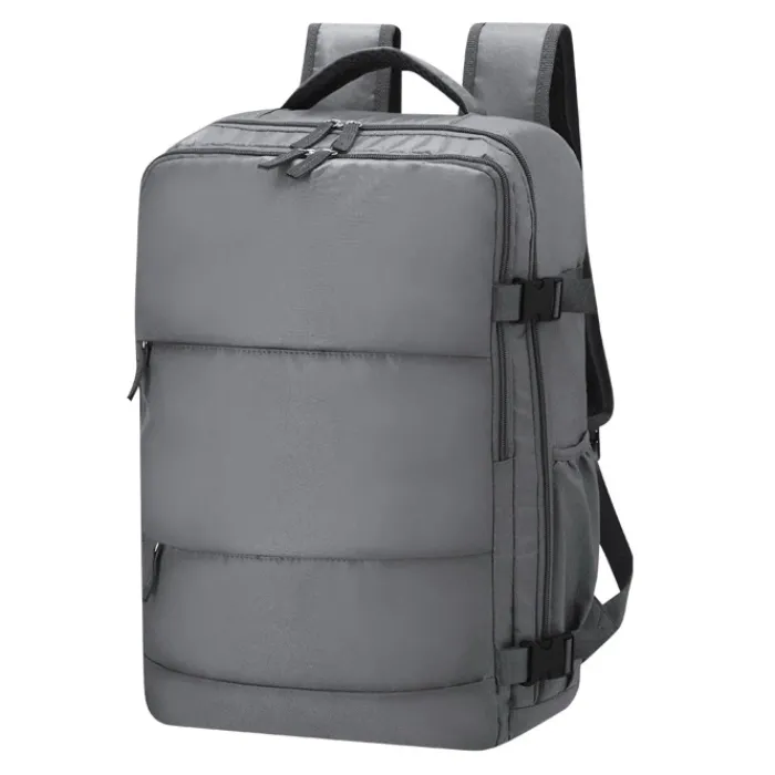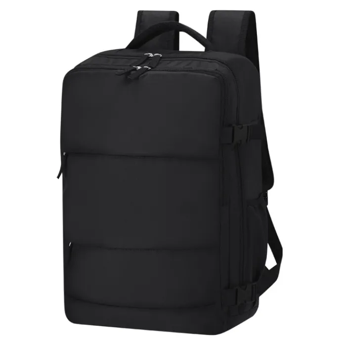 Zaino multifunzionale realizzato in poliestere 420D, dotato di ottima traspirabilità nella zona posteriore e nelle cinghie delle spalle, che favorisce la dissipazione del calore grazie al dorso imbottito. Le cinghie larghe sono progettate per alleviare la pressione sulle spalle, consentendo di portare lo zaino comodamente per lunghi periodi. Perfetto per qualsiasi situazione grazie ai suoi numerosi scomparti: due tasche frontali, tre grandi scomparti centrali – uno portatutto, una tasca centrale di grande capacità per riporre vestiti e/o accessori con organizer interno, e due scomparti imbottiti, ideali per un laptop fino a 15 pollici e un tablet fino a 12 pollici. Include anche una tasca laterale per un accesso rapido. Ideale per viaggi o per l’uso quotidiano grazie al suo design regolabile, che si adatta a ogni stile di vita.