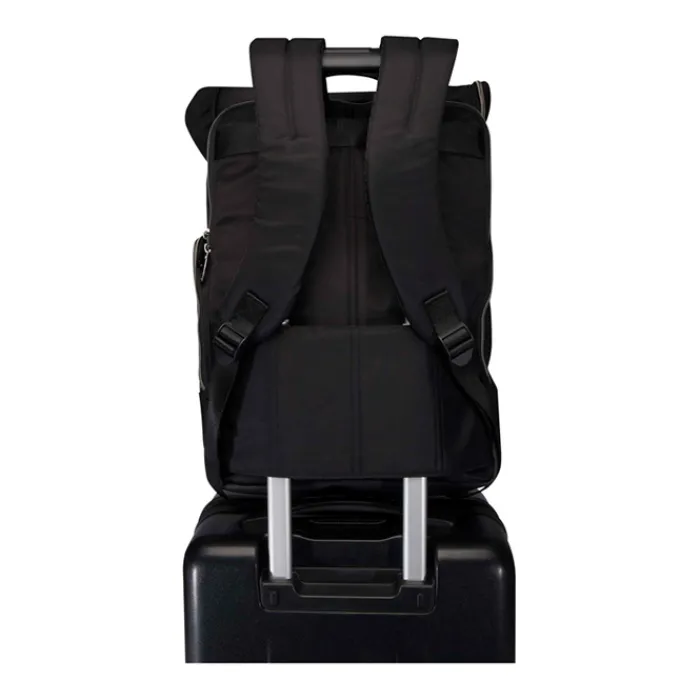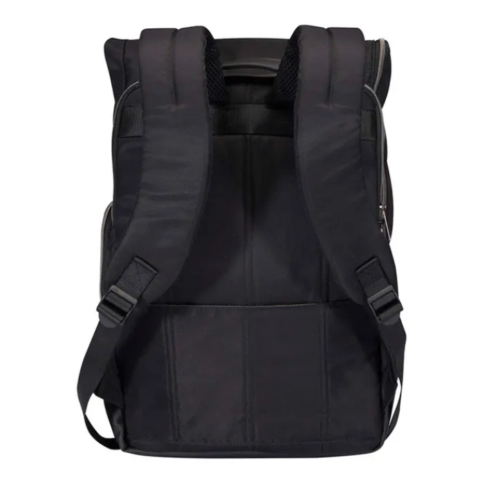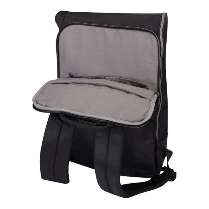 Lo zaino rolltop è perfetto per il lavoro e il tempo libero, grazie allo stile elegante e alla versatilità. Realizzato in nylon riciclato certificato GRS di alta qualità, presenta una morbida fodera in PET riciclato ed elementi in pelle PU di prima qualità. Lo zaino è dotato di uno scomparto dedicato per computer portatile da 15” con 2 tasche aggiuntive per gli accessori elettronici, uno scomparto principale con una pratica apertura a cerniera a L e 2 tasche, una tasca anteriore con cerniera e una tasca laterale. Gli spallacci imbottiti e regolabili e il manico superiore rivestito in PU garantiscono comfort durante il trasporto. Capacità: 18 litri. Resistenza fino a 10 kg di peso. Senza PVC.