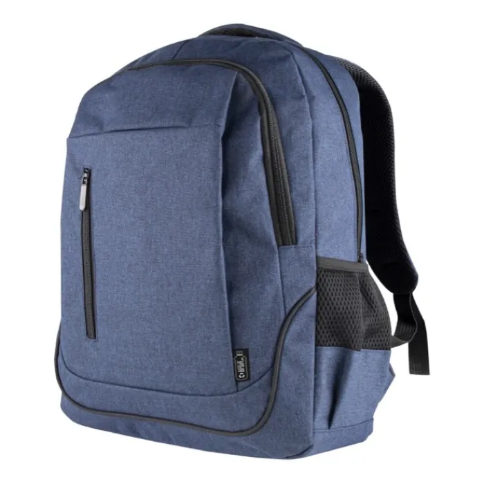 Zaino realizzato in poliestere RPET 300D. Ha imbottiture interne, esterne e posteriori, oltre a vari scomparti. Può sopportare fino a 10kg di peso.