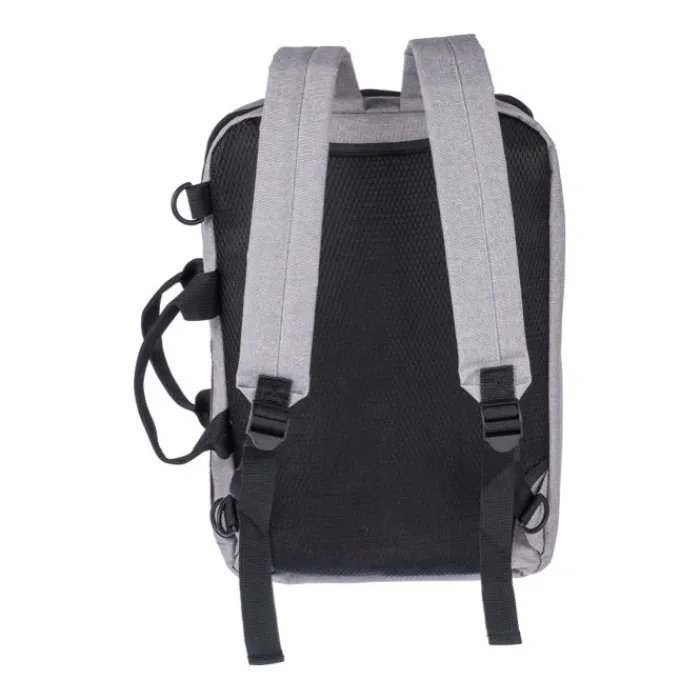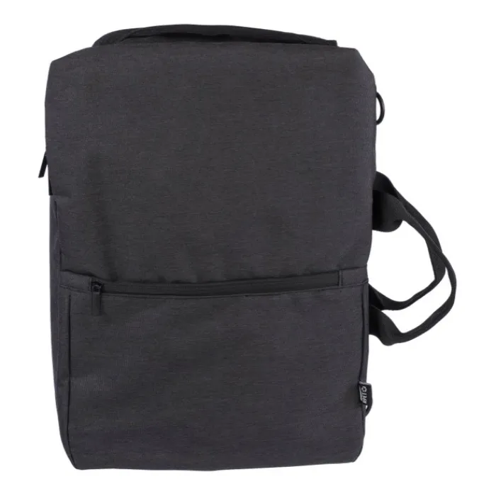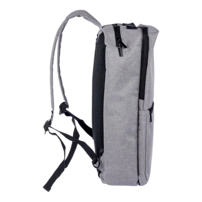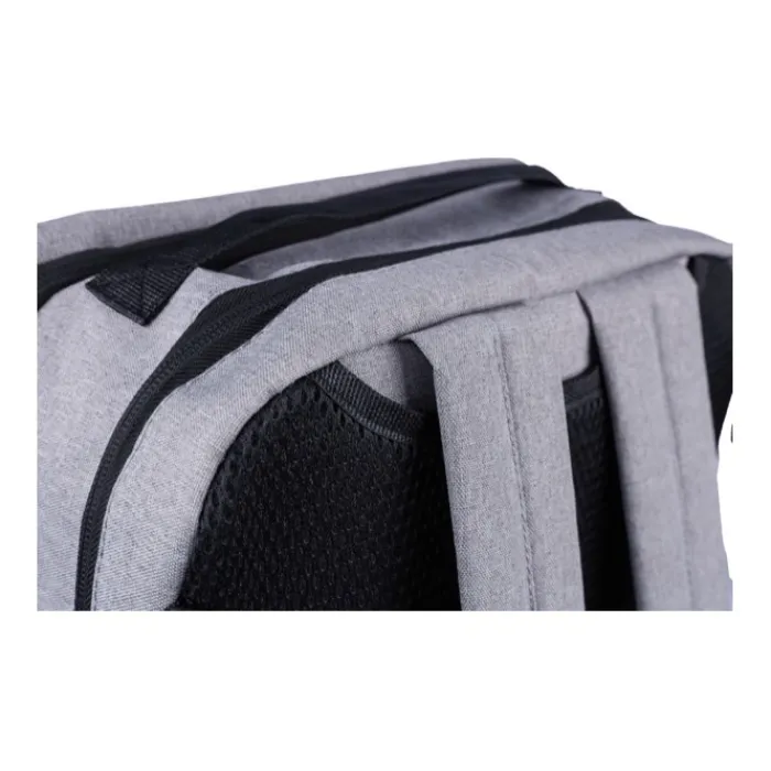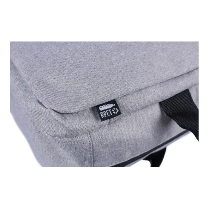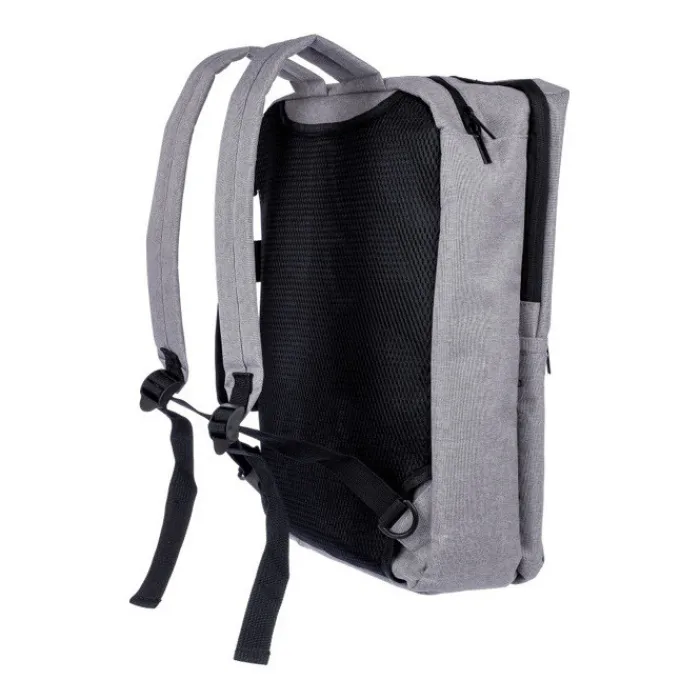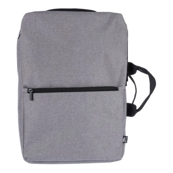 Zaino in poliestere rPET 300 D con fodera interna 210 D, adatto per computer portatile da 15 pollici, a prova di cabina, passante per il trasporto sulla parte superiore, spallacci regolabili, due manici laterali per il trasporto, cinture regolabili nascoste dietro l’imbottitura per il trasporto, scomparto per laptop in velcro, piccolo scomparto con chiusura lampo, retro imbottito ventilato, peso massimo trasportabile circa 8 kg, include etichetta rPET