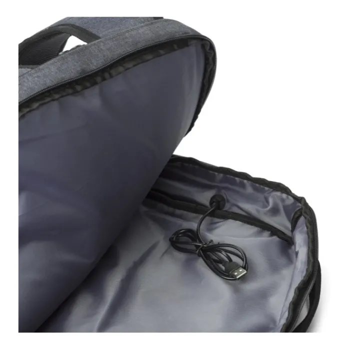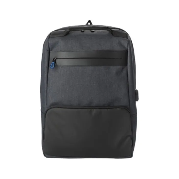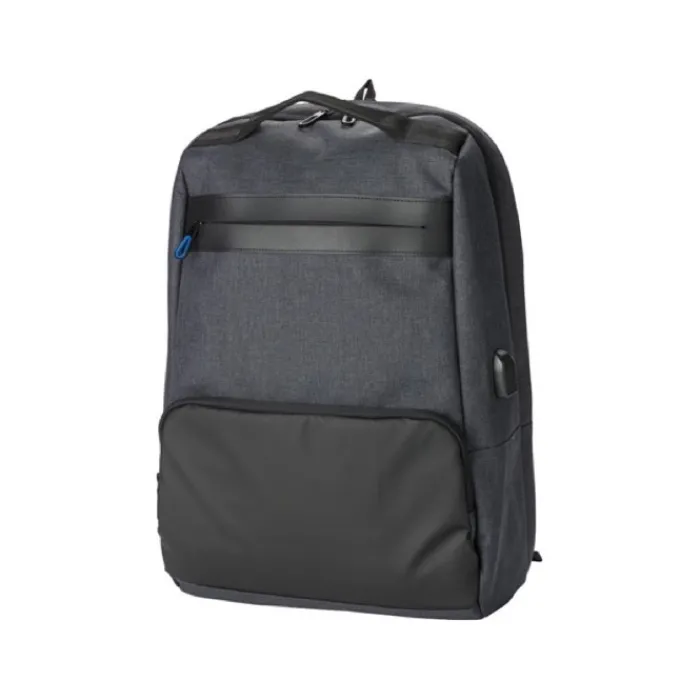 Zaino in PVC two tone. Ha uno scomparto principale con vano imbottito per un portatile da 15 pollici, una tasca posteriore antifurto e due tasche anteriori con cerniera. Attacco USB su un lato. Spallacci regolabili imbottiti.