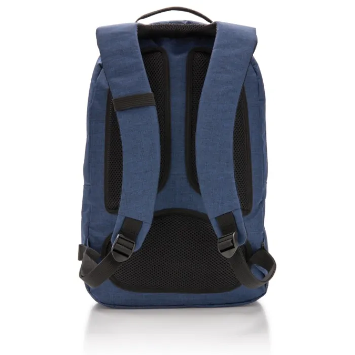 Zaino in elastomero termoplastico (TPE) e poliestere 600D con ampio scomparto per laptop da 15” e tasca porta tablet. Spallacci regolabili e pannello posteriore in rete imbottito. Scomparto porta scarpe nella parte frontale.
